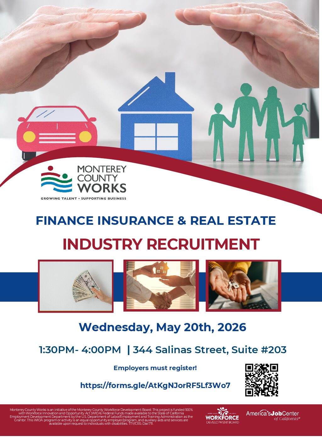 Join our Monterey County Works, Industry Specialized Recruitment – Healthcare from 1:30pm-4pm in our Career Center, suite 203. Meet with employers actively hiring in the Healthcare Industry. Your next job could be just one conversation away! Event will feature 3-4 employers within the Healthcare Industry.